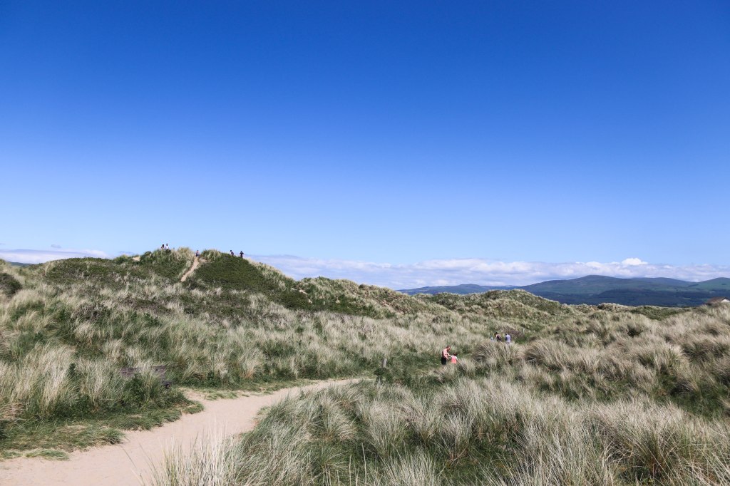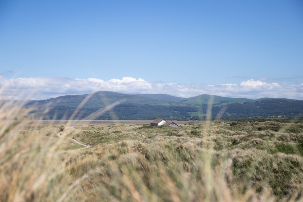 From the car park, there are 3 routes to the beach; one that takes you alongside the estuary, one through the sand dunes and one that takes you via the visitor centre and then along a board walk. My favourite route is through the sand dunes. I love to look back along the way to look at the view – mountains in the background, the visitor centre just to the right and a caravan park in the distance. Plus if you look to your left, you can see across the estuary to Aberdovey.