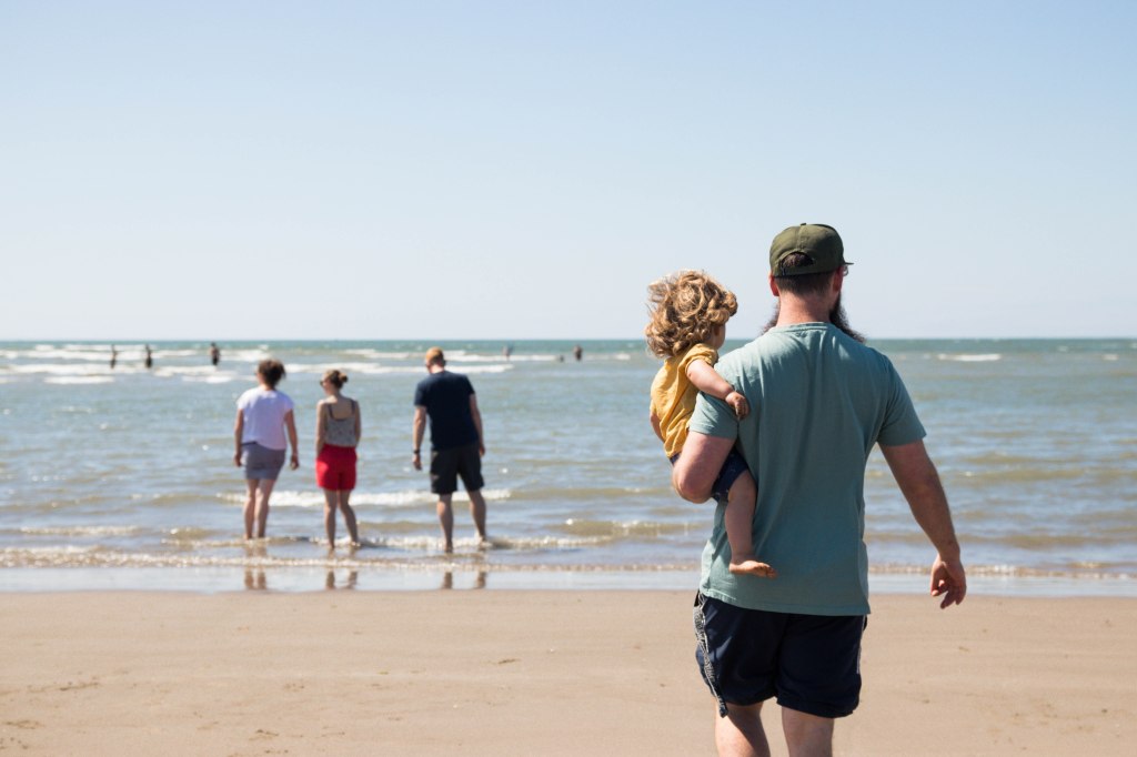 As it was the start of the summer season, we paid our £2 (thankfully they offer a contactless option – who carries cash with them anymore?!), found our friends’ car and parked up next to them. Having put suncream on Toby, Ezra in the sling wrap and bought an ice cream for Sam, we headed to the beach.