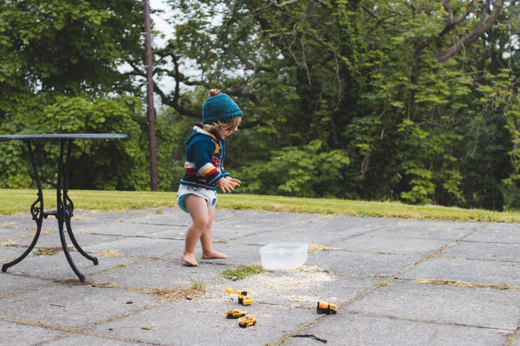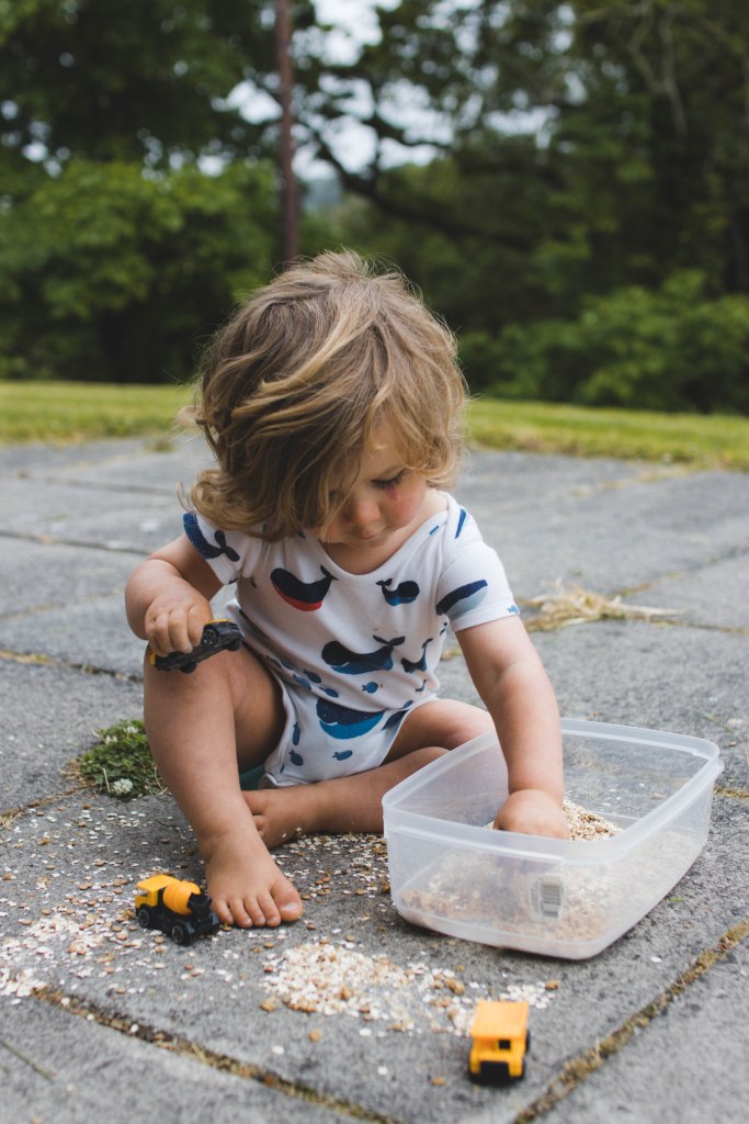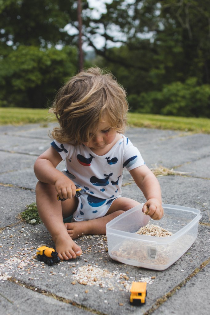 We took it outside so the mess stayed out of the house (or at least the majority stayed outside – we definitely had to hoover up weetabix, lentils and oats!) and Toby played. He loved it! And of course, I loved capturing him playing on my camera š·