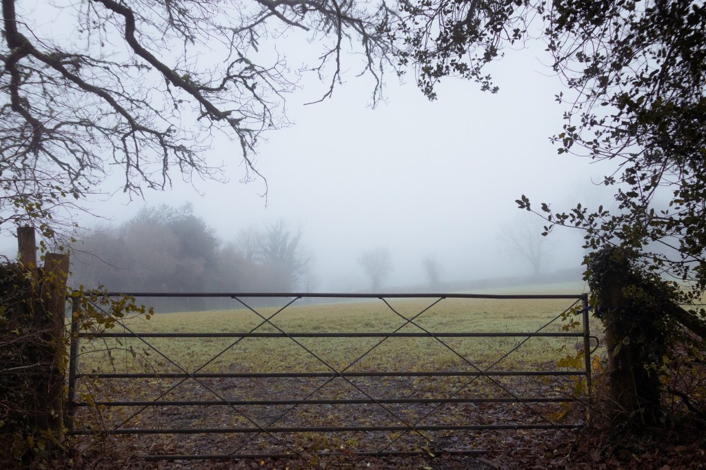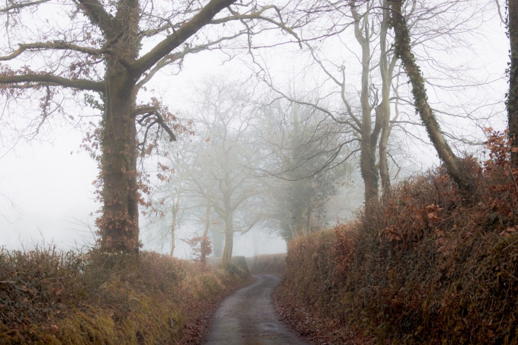 Christmas Day in Devon. After Christmas dinner, the family headed out for a foggy walk in the countryside.